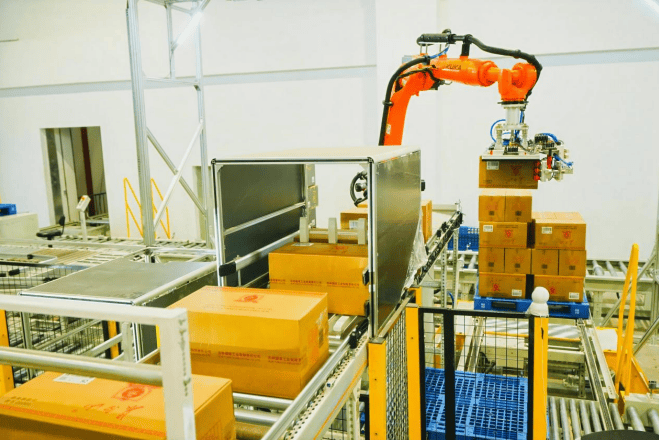 正在占地仅2000平方米的库区内,储分一体区采用倍速链+多层穿越车系统,出库环节同样配备2台高效拆垛机械手。该企业的仓储运营实现了质的飞跃。